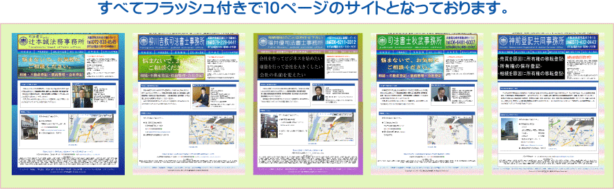 ホームページ制作を検討されておられます司法書士の先生がこのページを見て頂いていると思いますが、上にあげております実績をよく見てください。もし、お知り合いにホームページをもたれている司法書士の先生がおられましたら、そのホームページの各ページがこの上の例のように、地域名+お仕事の内容のキーワード検索でヤフーでもグーグルでも1ページに出てくるか聞いてみて下さい。